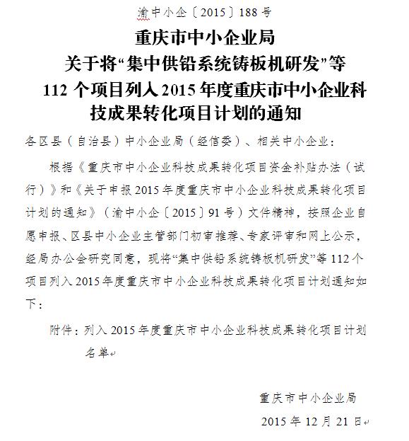 Over the years, the economy of Chongqing urban construction (Group) Chongqing green science and Technology Development Co. Ltd. and Chongqing real estate Career Academy cooperation, adhere to innovation and development, the development of "Chinese creation" "Internet plus color temperature adjustable brightness anti haze intelligent control system and LED intelligent lighting technology. This technology has been successfully listed in the project of scientific and technological achievements transformation since December 21, 2015, when it was declared the project of small and medium sized enterprises' scientific and technological achievements transformation project in 2015 in Chongqing in July 22, 2015. The notification file is as follows: