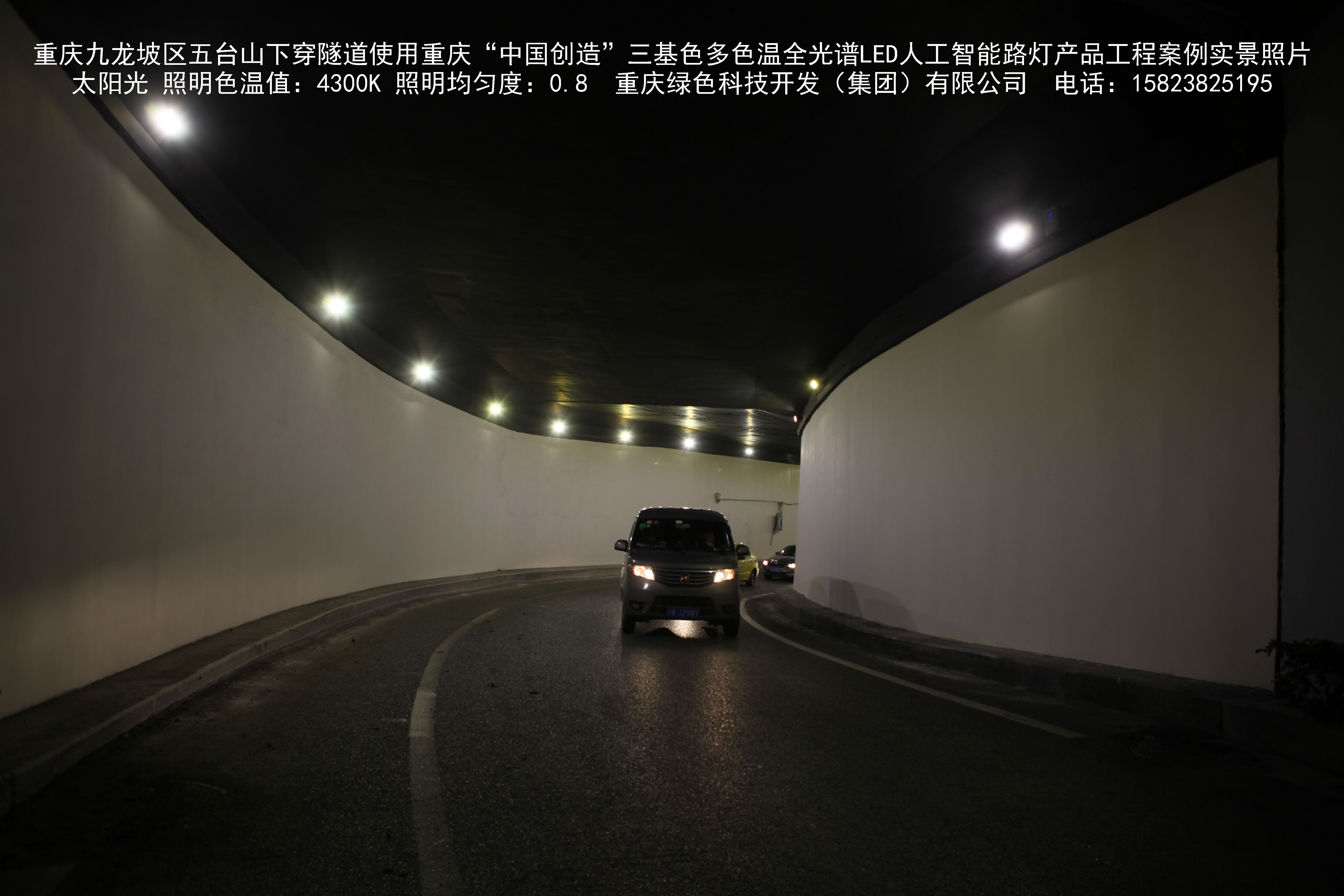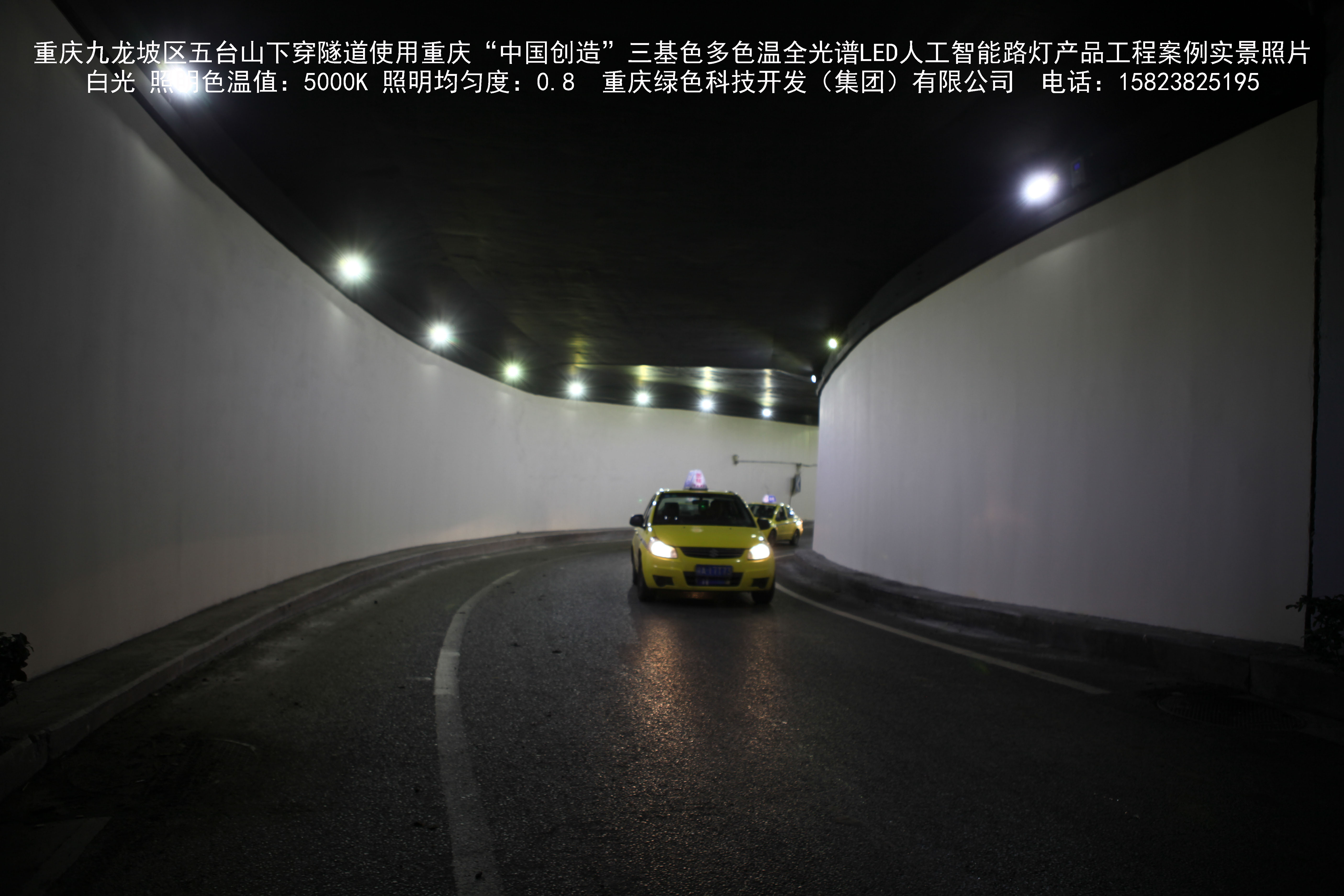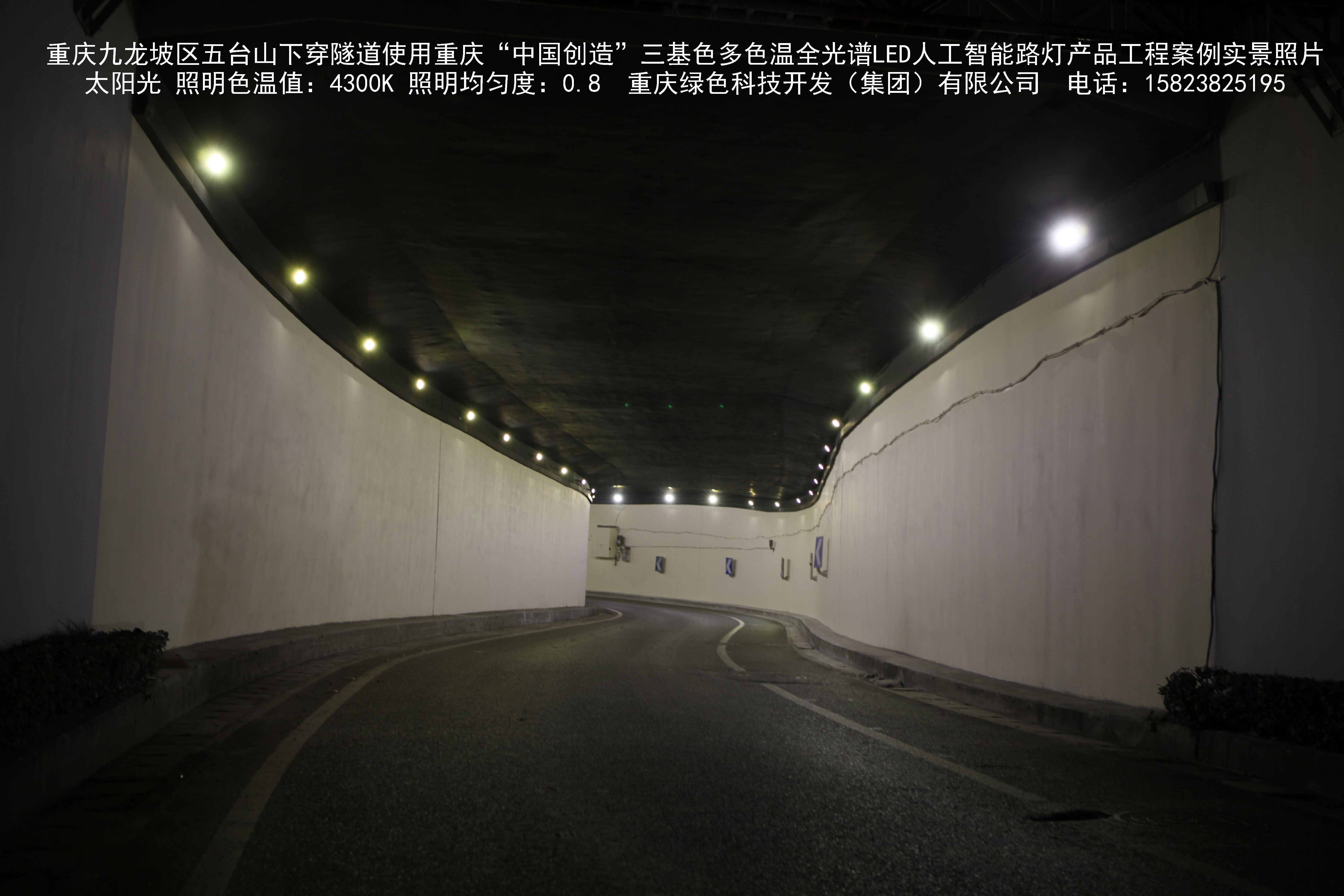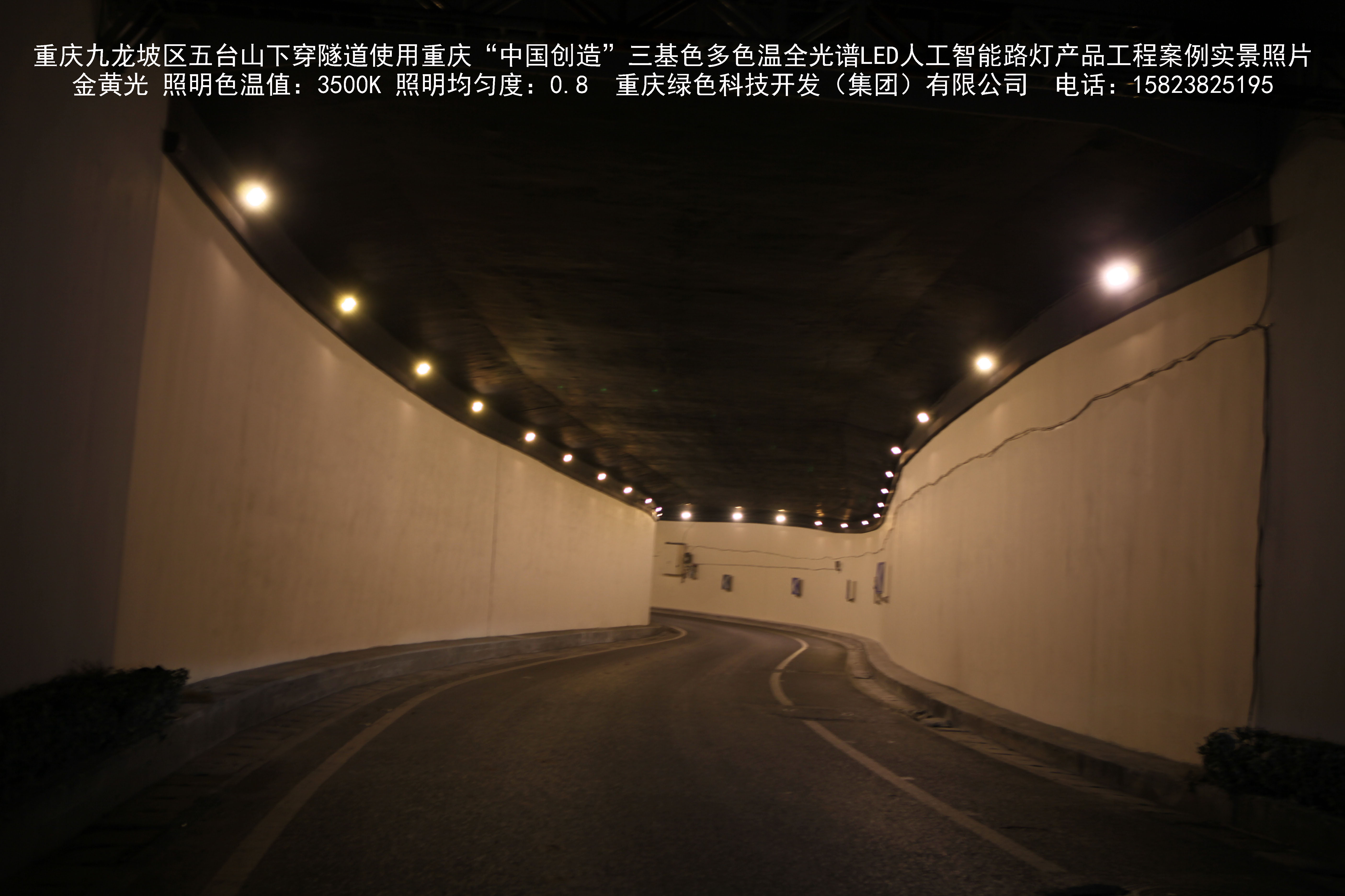 2018年9月,重慶市九龍坡區城市管理局使用我司自主研發制造的重慶“中國創造”三基色多色溫全光譜LED人工智能隧道燈系列產品,實施了五臺山下穿隧道市政設施品質提升工程。該工程已全面竣工。工程實施后,極大地提高了城市照明清晰度、燈光均勻度、舒適度。通過智能終端實現單燈感知、線纜防盜報警,與原高壓鈉燈相比,節能率60%以上,有效解決了關閉控制回路或間隔關燈方式造成的照明暗區,確保行人和車輛通行的安全,實現城市路燈照明系統的智能化管理,推進了智慧城市建設。