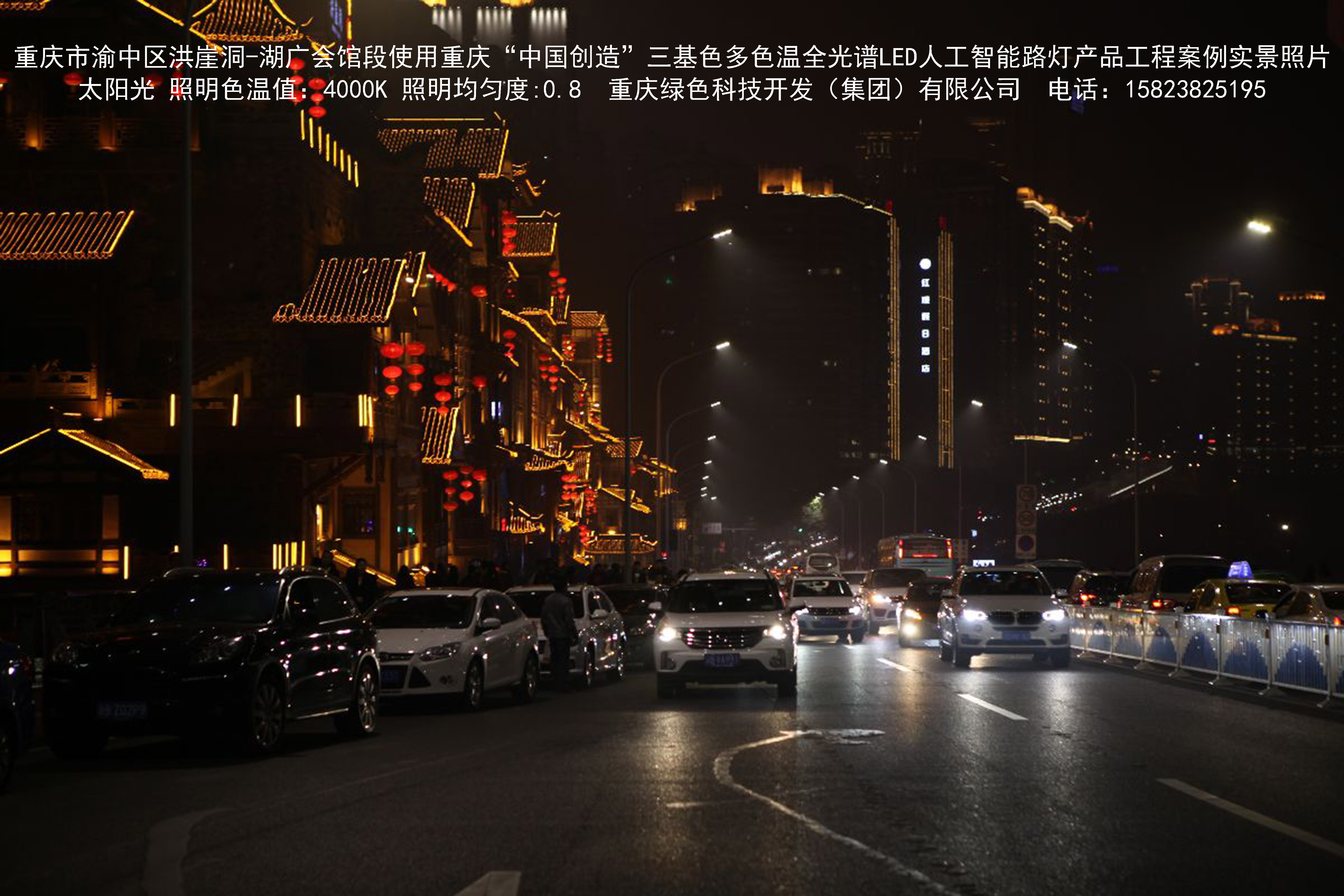 重慶市渝中區洪崖洞-湖廣會館段使用我司研造的重慶“中國創造” 三基色多色溫全光譜LED人工智能路燈產品工程案例