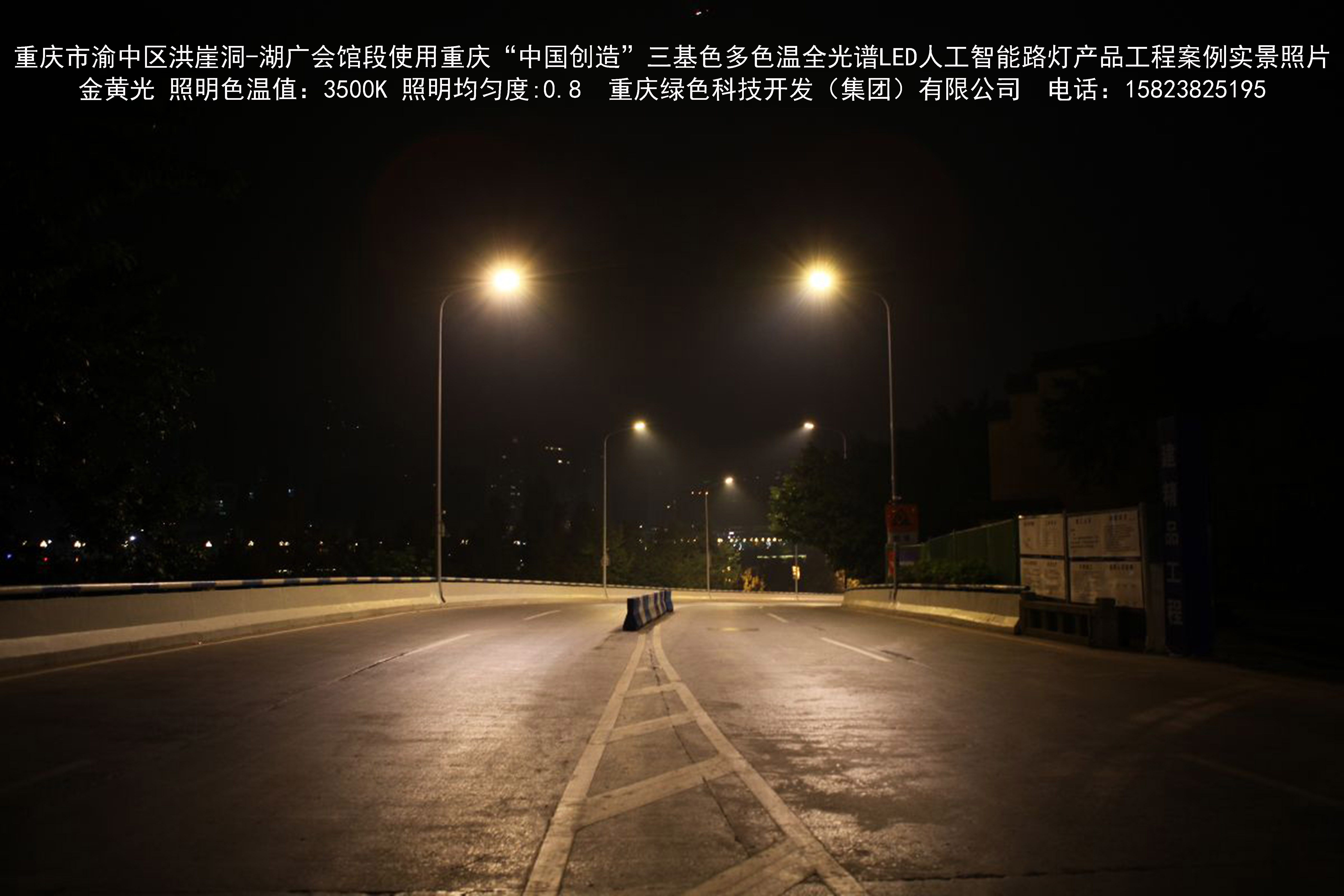 2018年12月,重慶市城市照明管理局使用我司自主研發制造的重慶“中國創造”三基色多色溫全光譜LED人工智能路燈系列產品,實施了渝中區市政設施品質提升工程。該工程已全面竣工。工程實施后,極大地提高了城市照明清晰度、燈光均勻度、舒適度。通過智能終端實現單燈感知、線纜防盜報警,與原高壓鈉燈相比,節能率60%以上,有效解決了關閉控制回路或間隔關燈方式造成的照明暗區,確保行人和車輛通行的安全,實現城市路燈照明系統的智能化管理,推進了智慧城市建設。
