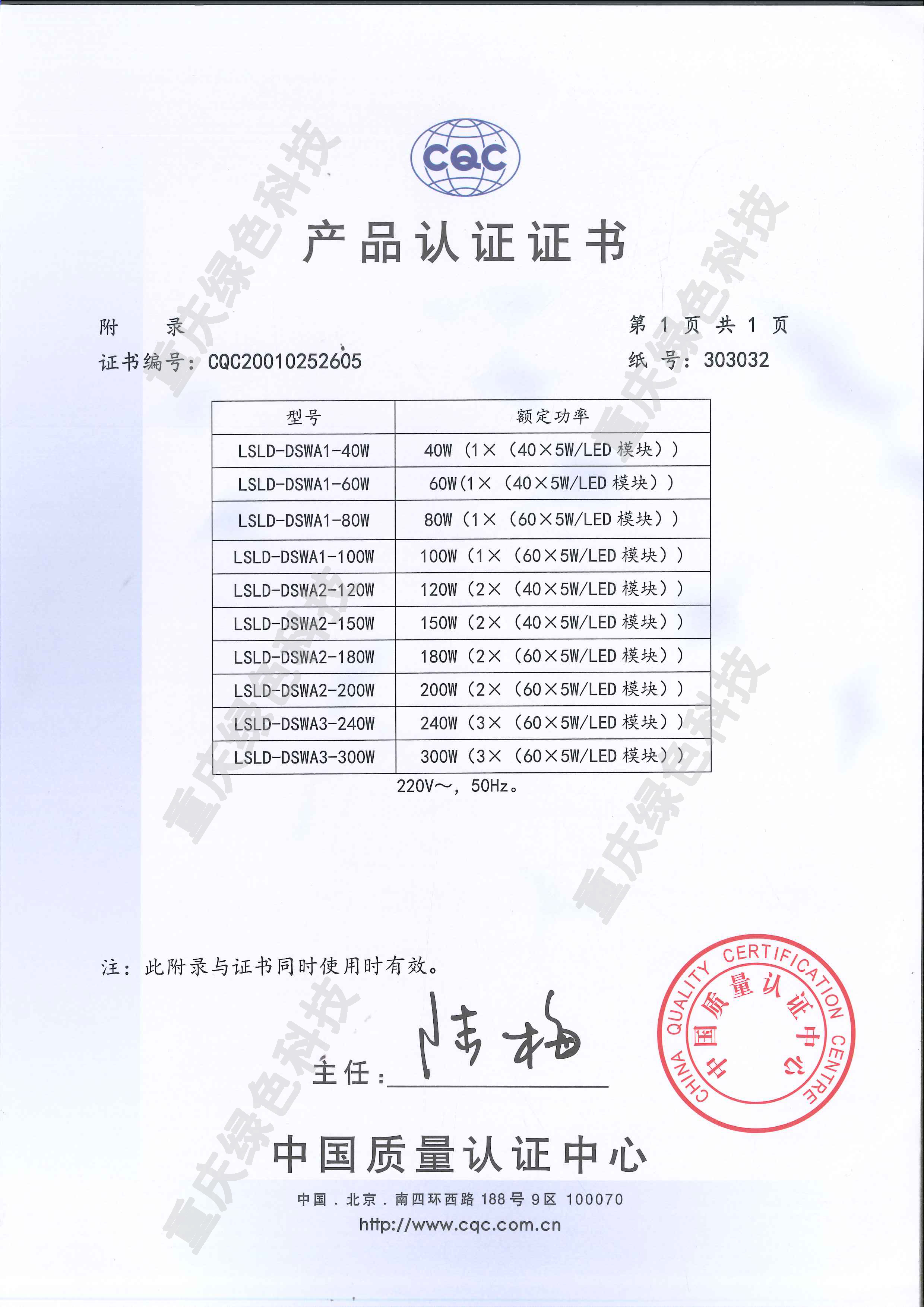 多色溫LED路燈CQC認證證書